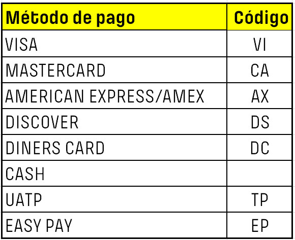 A continuación te indicamos cuales son los métodos de pago soportados en GDS: