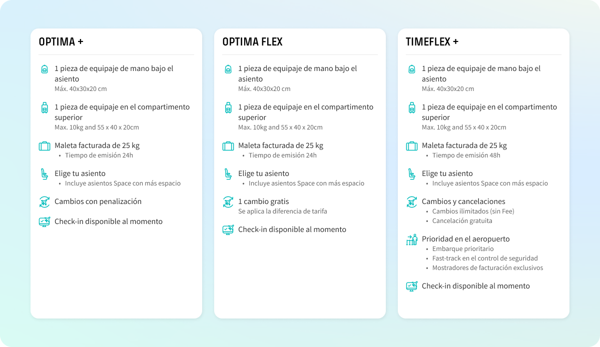 Te presentamos nuestras tarifas disponibles en GDS, incluyendo la nueva tarifa Optima Flex. ¡Descúbrela!