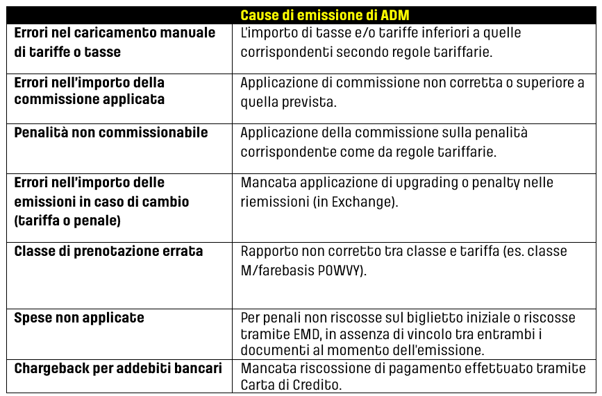 Di seguito riportiamo le cause più abituali di emissione di ADM per garantire che la nostra struttura tariffaria si applica adeguatamente: