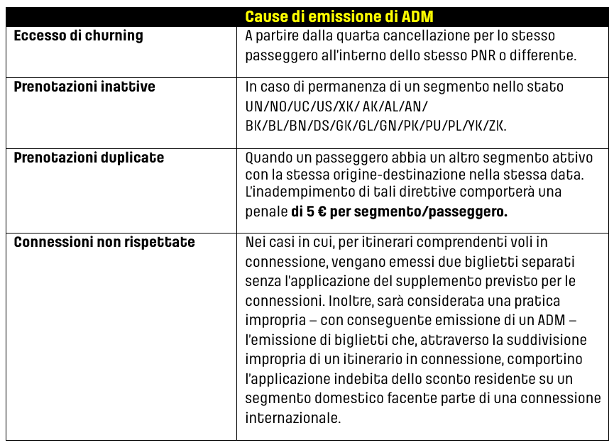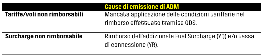 Per coprire i costi associati alla gestioni degli ADM, ciascun ADM emesso comporterà una spesa di 20 € (o importo equivalente nella valuta locale). In caso di emissioni o rimborsi, tale costo sarà addebitato per ciascun biglietto associato all’ADM per importi pari o superiori a 10 €. Nel caso di prassi irregolari, il costo sarà addebitato alla prenotazione independentemente dall’importo della penalizzazione.