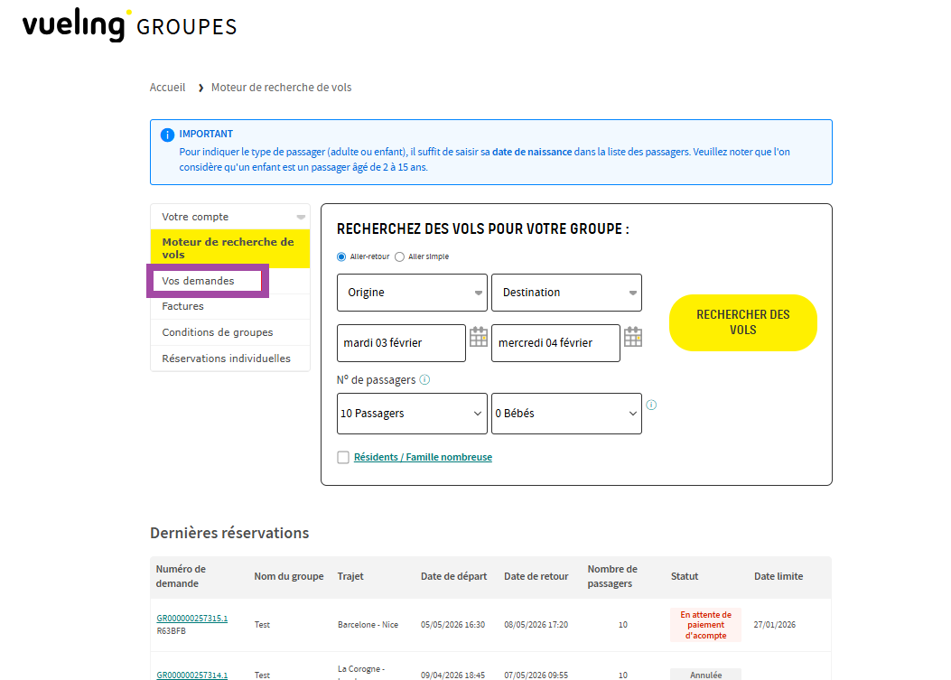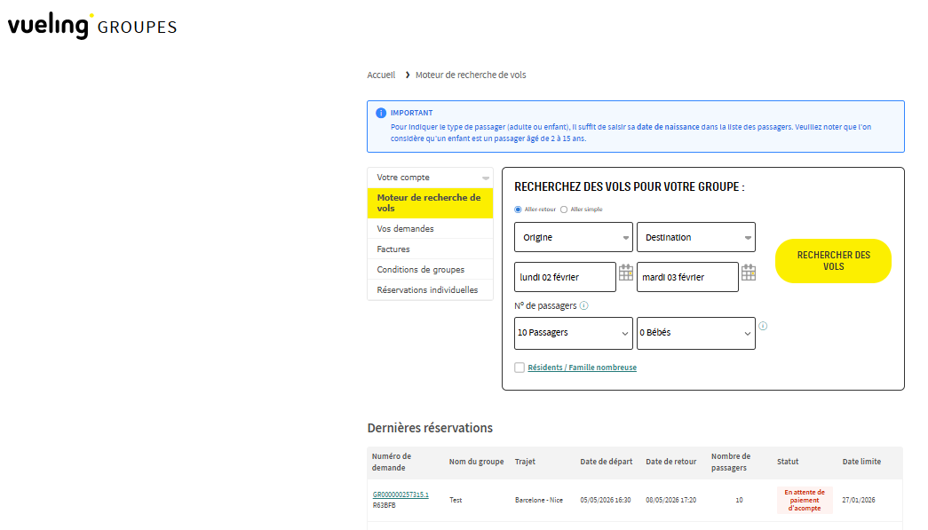1.RECHERCHEZ DES VOLS POUR VOTRE GROUPE