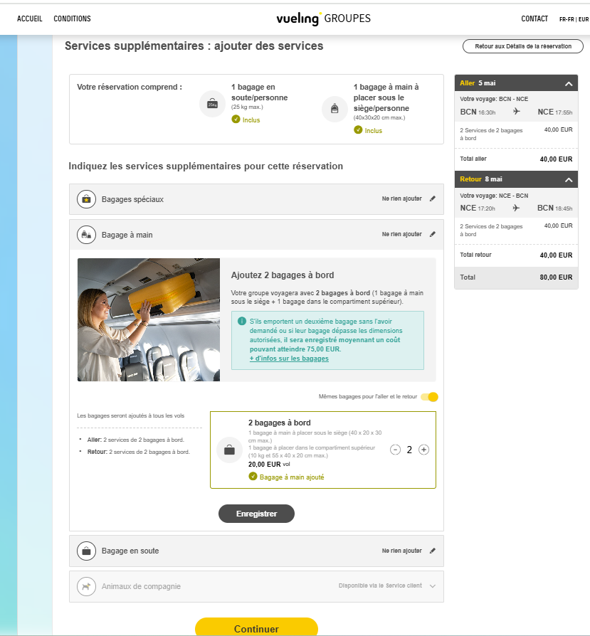 Vous pouvez ajouter des services supplémentaires directement dans la réservation via le portail de Groupes.