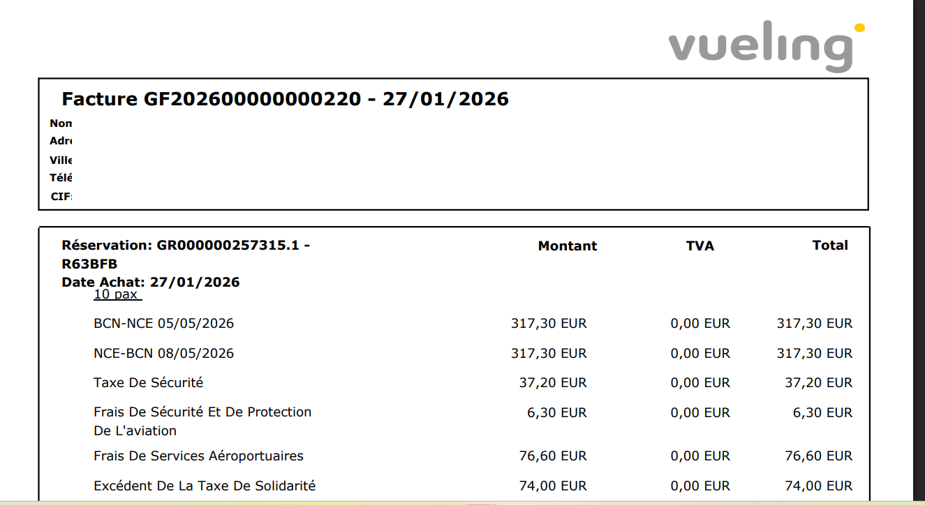 Lorsque vous aurez effectué la recherche et sélectionné l'option de vol la plus pratique pour votre groupe, vous recevrez le détail du devis. Celui-ci aura le format suivant : GRXXXXXXXXXXX.1